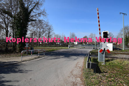 Hagenbach Eisenbahn – Hagenbach Bahnübergang – Ortsrandstraße/Feldweg – Bü Hagenbach I 54,182, Datum: 10.3.2026, Farbe, Format ca. 15 x 10 cm (B. H.).