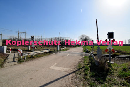 Hagenbach Eisenbahn – Hagenbach Bahnübergang – Ortsrandstraße/Feldweg – Bü Hagenbach I 54,182, Datum: 10.3.2026, Farbe, Format ca. 15 x 10 cm (B. H.).